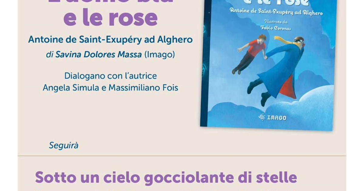 Sabato 29 giugno alle 20 al MASE, nella Torre Nuova di Porto Conte, si terrà invece la presentazione di “L’uomo blu e le rose - Antoine de Saint-Exupéry ad Alghero”, il nuovo racconto per ragazzi di Savina Dolores Massa, illustrato da Fabio Coronas (Imago Edizioni), che ha per protagonista il pilota-poeta che proprio ad Alghero ha trascorso gli ultimi giorni della sua vita. Con l’autrice dialogheranno l’archeologa Angela Simula e Massimiliano Fois, direttore scientifico del MASE, museo dedicato all’autore di “Il piccolo principe”, il libro più tradotto al mondo. Al termine della presentazione, la Società Astronomica Turritana organizza “Sotto un cielo gocciolante di stelle”, osservazione del cielo liberamente ispirata alla poetica di Albert Camus. L’ingresso è gratuito fino a esaurimento posti.